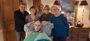 Eis Ekipp, d Infirmière M. an de Chauffeur H., ass hien an seng Seniorenresidenz siche gefuer. A sengem grousse Sall gouf hie vu sengem Rollstull op de Stretcher geluecht ginn, wärend seng Betreier dobäi waren, fir him mat vill Häerzlechkeet Äddi ze soen.