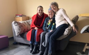 Zesumme mat hirer Mamm si mir bei si gefuer, wou eng Frëndin scho mat engem waarme Laache gewaart huet.